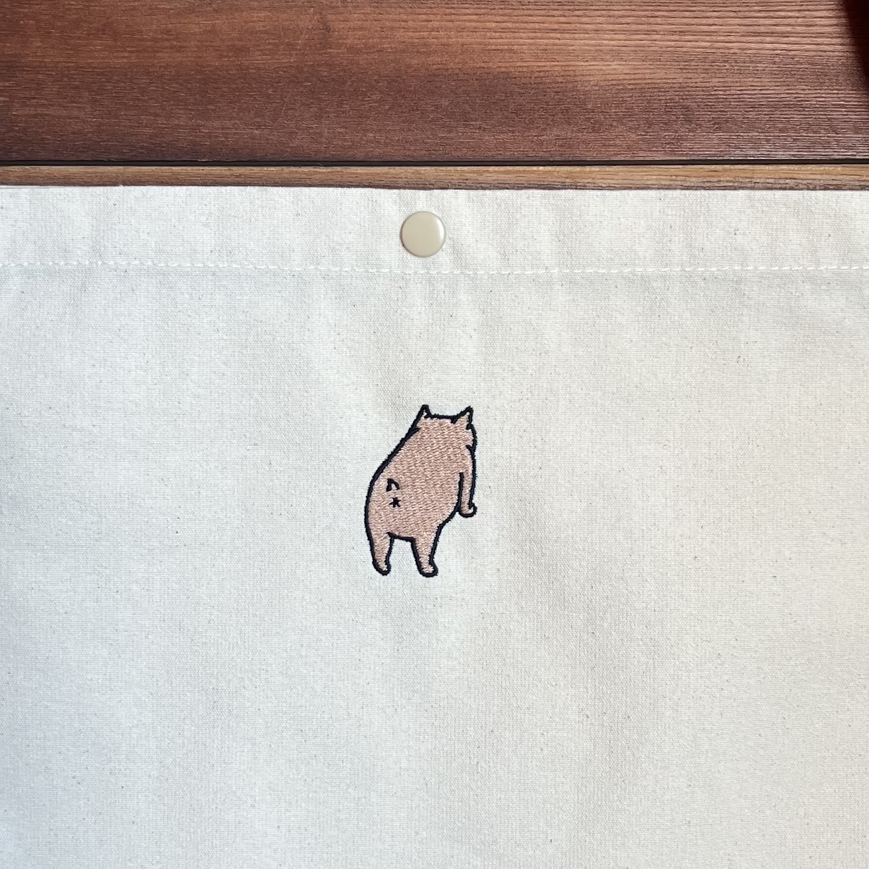 ちょこんと刺繍された「おしりちゃん」がかわいい、