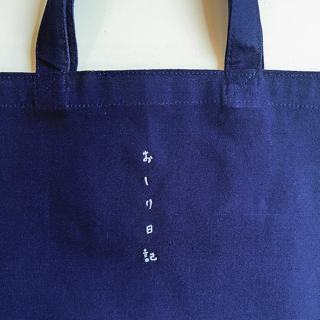 シンプルなキャンバス地に、ちょこんとおしりちゃんを刺繍。