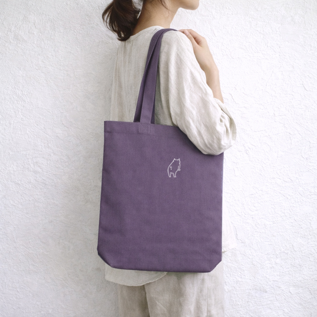 シンプルなキャンバス地に、ちょこんとおしりちゃんを刺繍。
