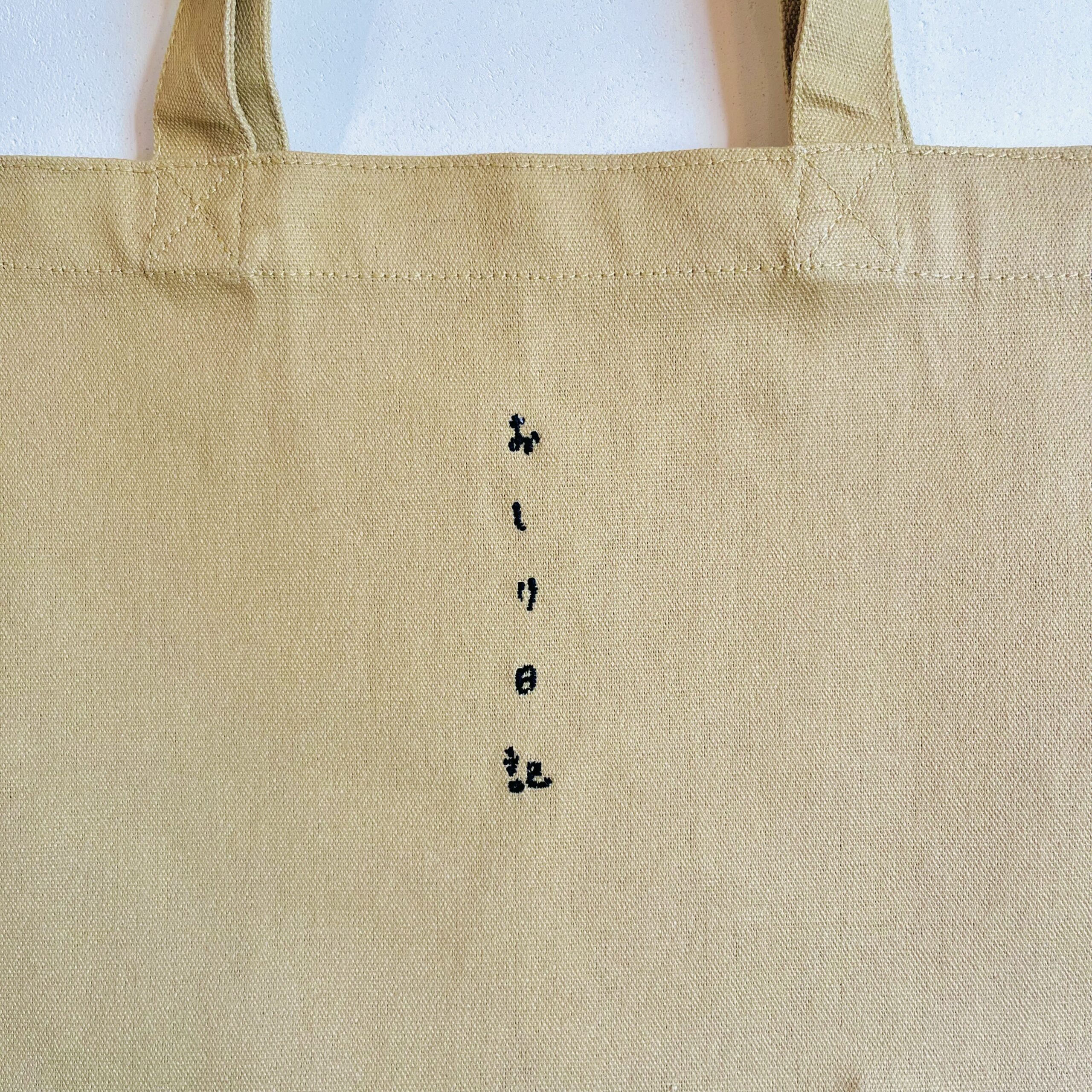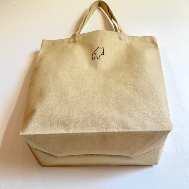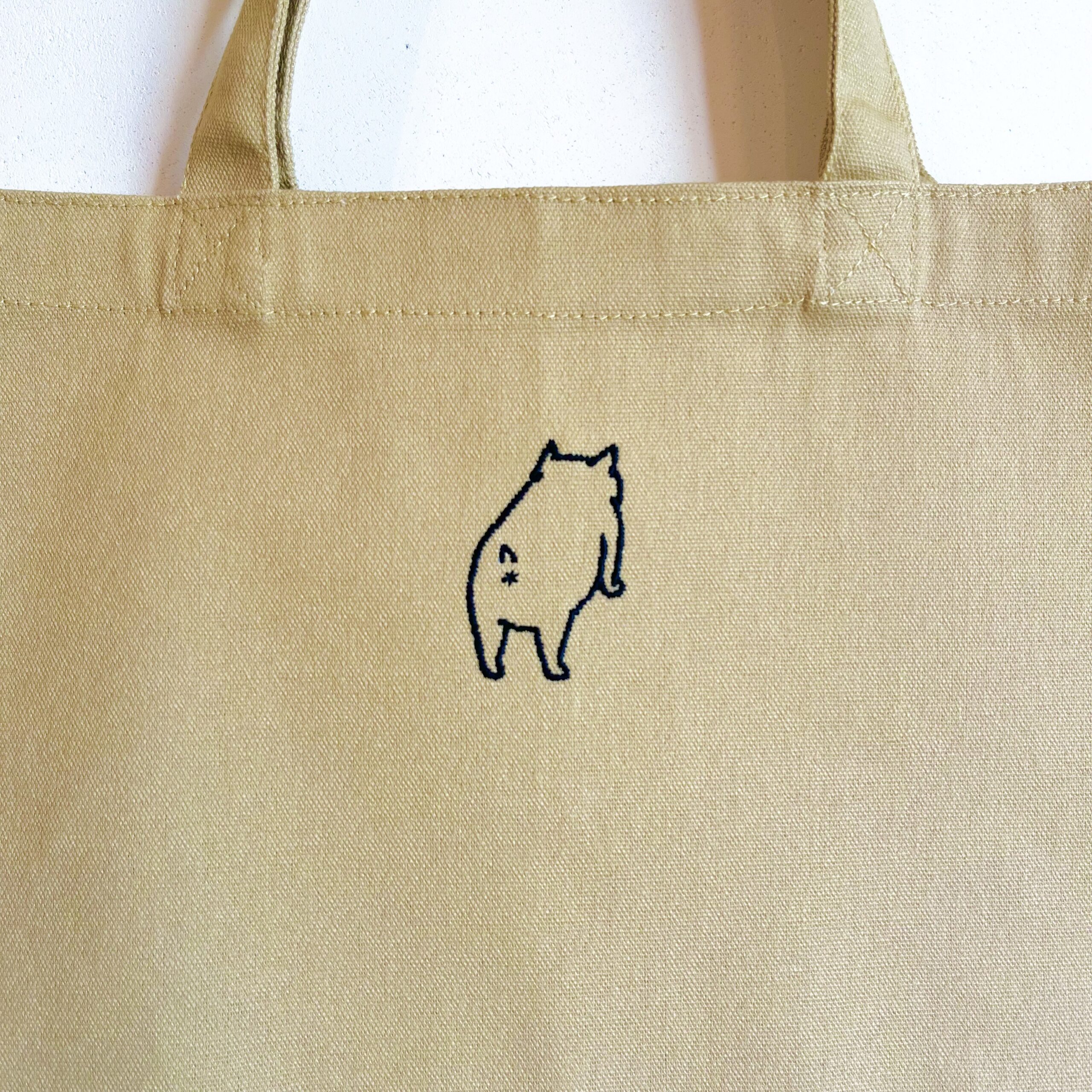 シンプルなキャンバス地に、ちょこんとおしりちゃんを刺繍。