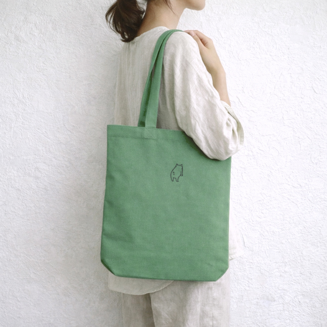 シンプルなキャンバス地に、ちょこんとおしりちゃんを刺繍。