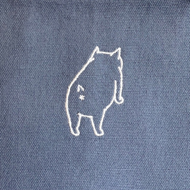 シンプルなキャンバス地に、ちょこんとおしりちゃんを刺繍。