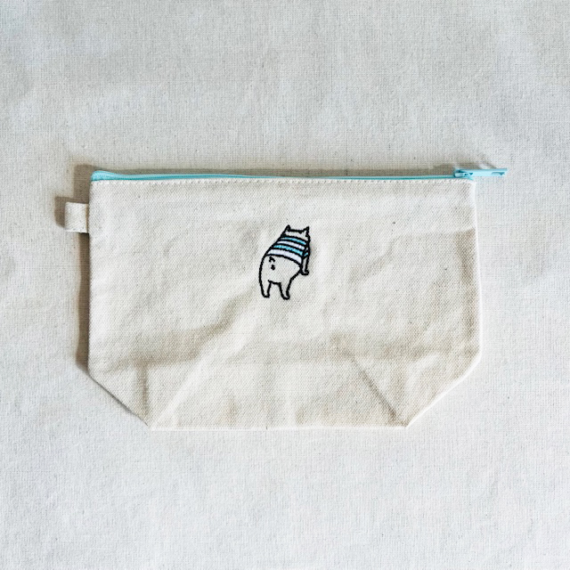 ファスナーカラーとお揃いのボーダーTシャツを着たおしりちゃんのワンポイント刺繍。