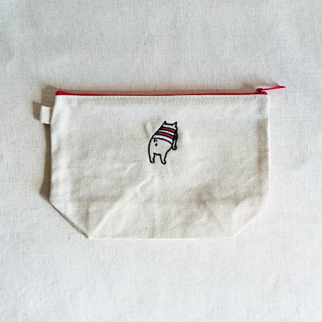 ファスナーカラーとお揃いのボーダーTシャツを着たおしりちゃんのワンポイント刺繍。