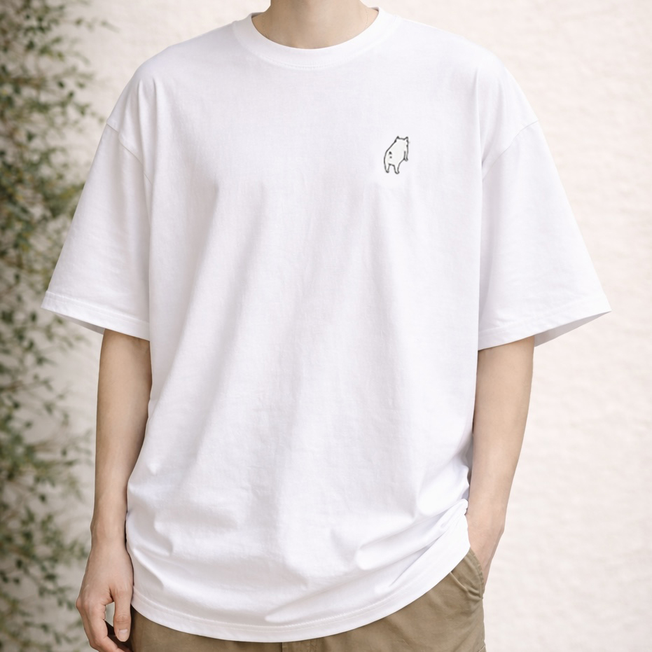 フレンチブルドッグをモチーフにしたおしりちゃんのワンポイント刺繍Tシャツ。